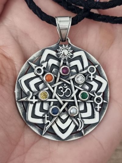 Создание истинного кулона «Наваграха» — это не простое изготовление украшения, это сакральный процесс, который я провожу для каждого клиента как уникальный ритуал планетарной алхимии.
