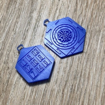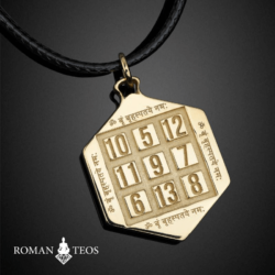 Этот вариант выглядит очень шикарно, особенно если добавить камни. Они усиливают как резонаторы тот поток энергии с которой будет работать ваш амулет. Передняя часть амулета — это Шри Янтра в объёмной форме. На задней части амулета будет выдавлена числовая комбинация, которую рассчитываю и согласовываю с Вами согласно запроса.