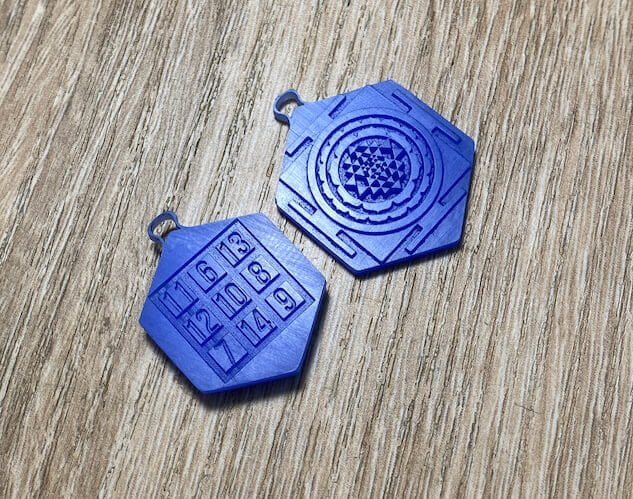 На фронтальной части талисмана у Вас будет геометрическая янтра (описал ее значение выше 👆). Но для конкретной «адресации» её энeрегии, я раcсчитаю Вашу личную числовую комбинацию. Эта числовой код, который будет выдавлен на задней части, которую не будут видеть другие люди. По сути, это как Ваш личный код доступа к силе янтры. Для определения которого мне нужно будет от Вас некоторые данные рождения и полное имя латиницей. Талисман может быть выполнен из благородных металлов: золото (любой пробы) или серебро 925. Можно делать чернение на оба материала, наносить лазерную гравировку и т.д. по желанию.