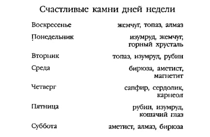 Камені по днях тижня та часу народження