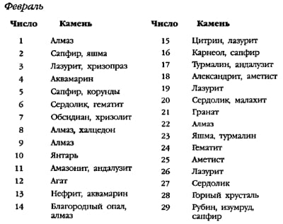 | Лютий | Перли, аметист, гіацинт (кр. циркон), | Аметист | Аметист |