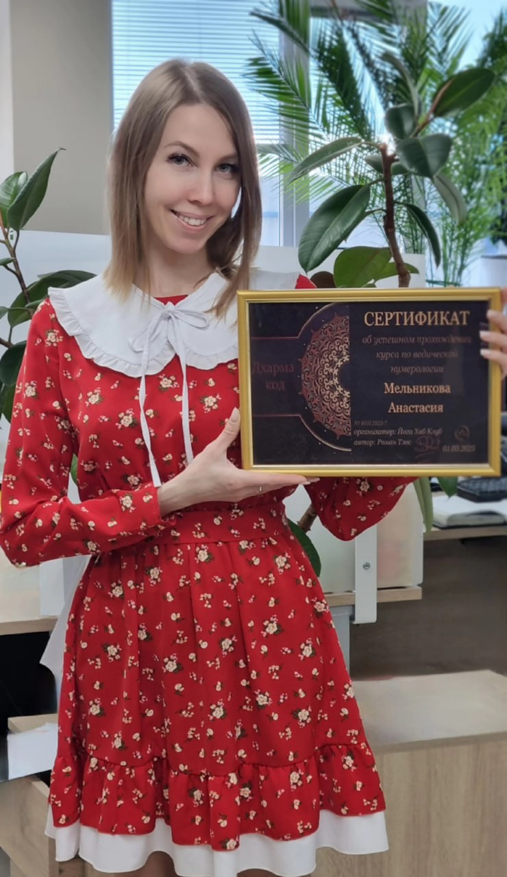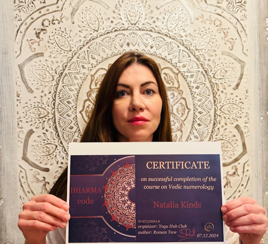 Після навчання учасники проходять підсумковий тест та отримують сертифікат про успішне проходження курсу з Ведичної нумерології «Дхарма код».