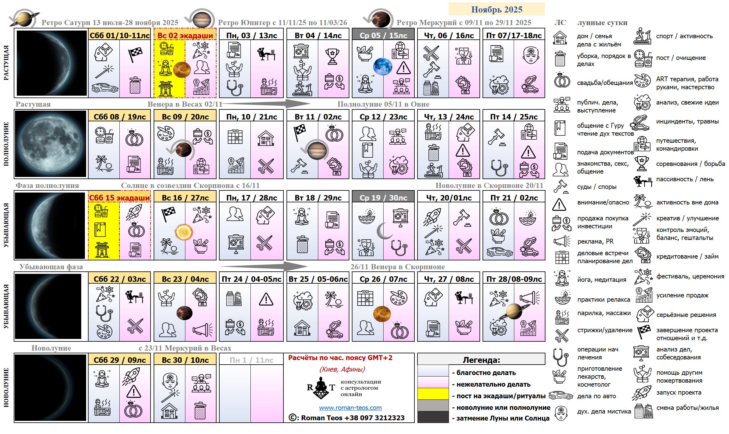 Усі ці дати, транзити та особливості я докладно розписав у своєму місячному календарі на листопад. Завантажити повний календар безкоштовно можна за посиланням в описі.