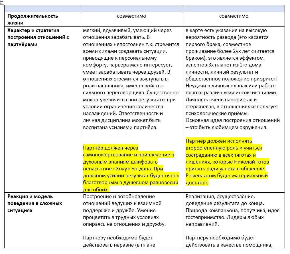 - аналіз особистих карт партнерів + важливі показники сумісності